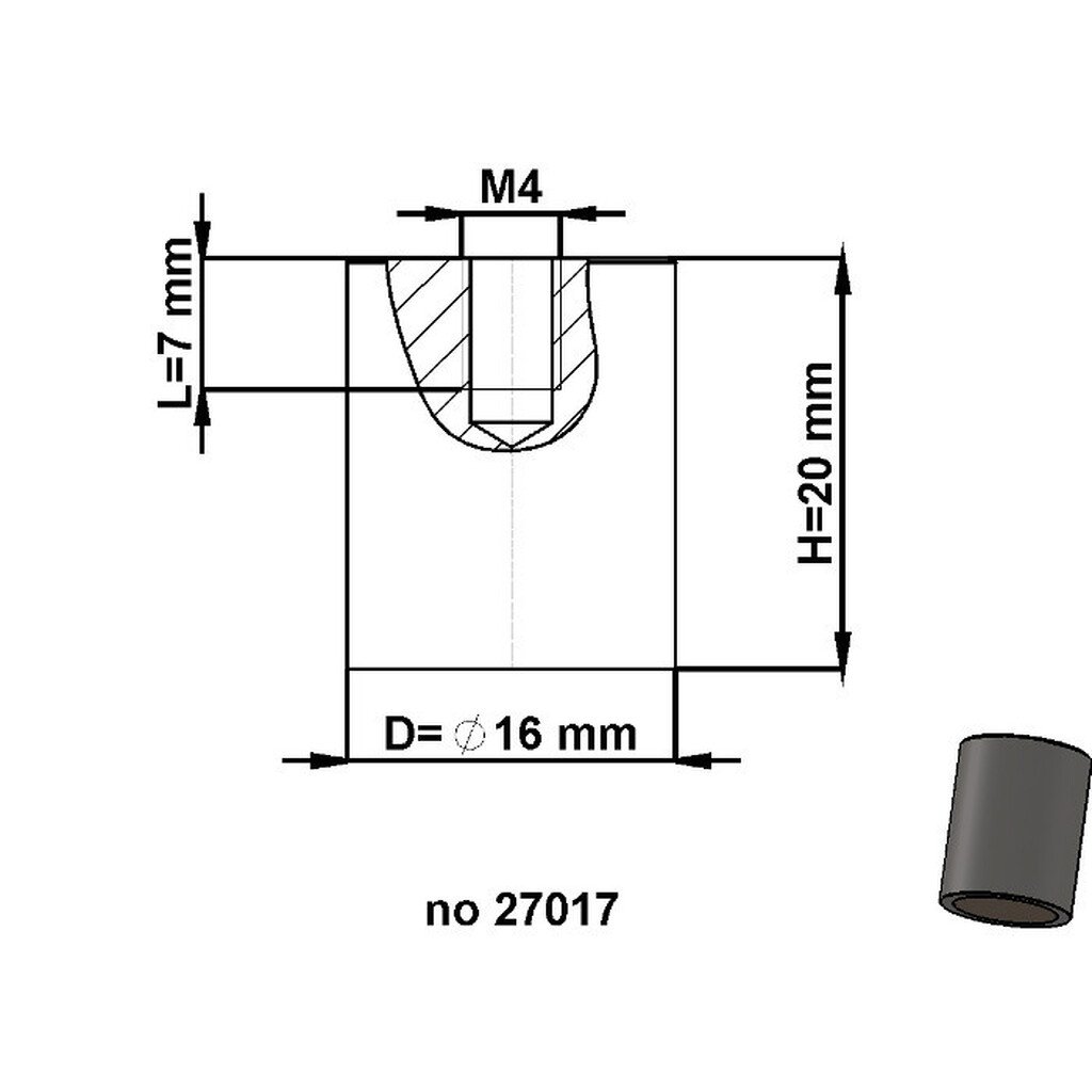Cylindrical pot magnet dia. 16 x height 20 mm with inner screw thread M4. screw thread length 7 mm
