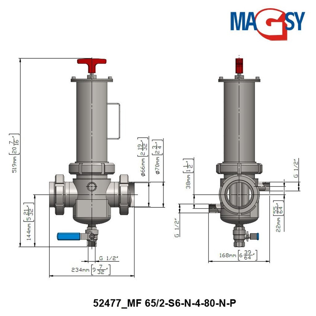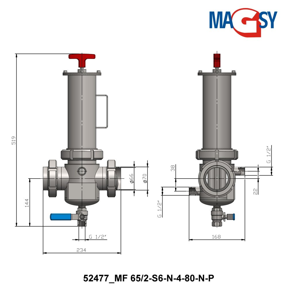 Flow-type magnetic separator MF 65/2-S6-N-4-80-N-P