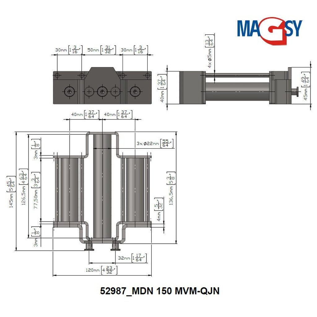 If you are placing the hopper magnet in its own structure (box, hopper, chute...), please note that such structures must not be made of metallic (magnetic) material. There is a risk of injury and a significant reduction in magnetic force. All structures in which the magnet is placed in the hopper must be made of non-magnetic materials. The minimum distance of metal (magnetic) structures from the magnet to the hopper is 200 mm.