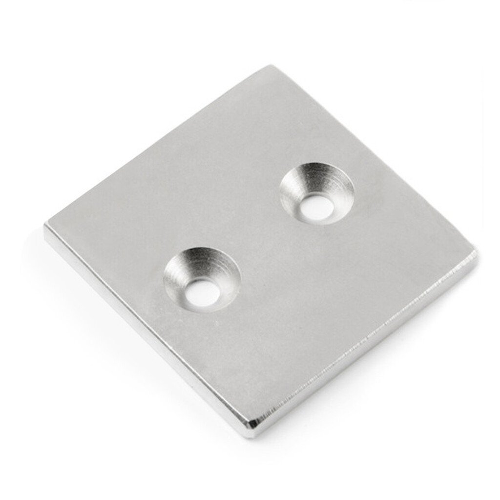 Neodymium magnet prism with a hole for screws with embedded heads 40 x 40 x 4 N 80 °C, VMM4-N35