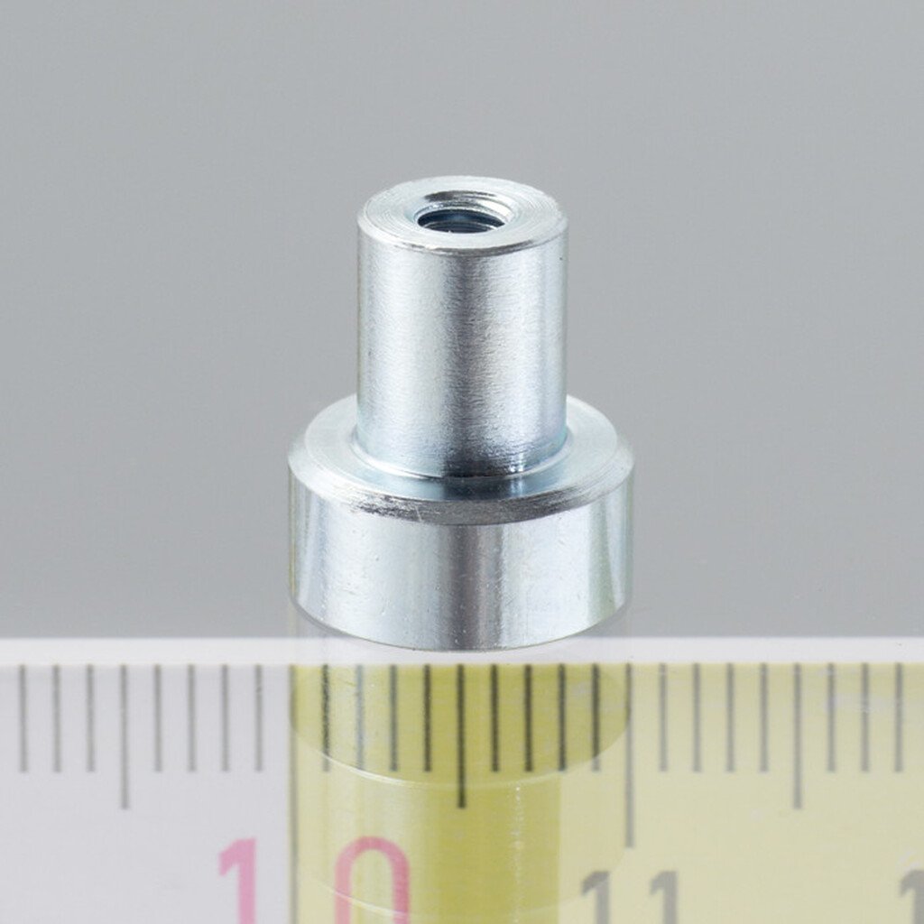 Pot magnet with stems dia. 10 x height 4,5 mm with outer screw thread M3, screw thread height 7 mm