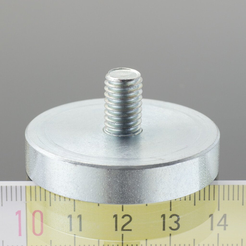 Pot magnet with stems dia. 40 x height 8 mm with outer screw thread M8, screw thread height 12 mm
