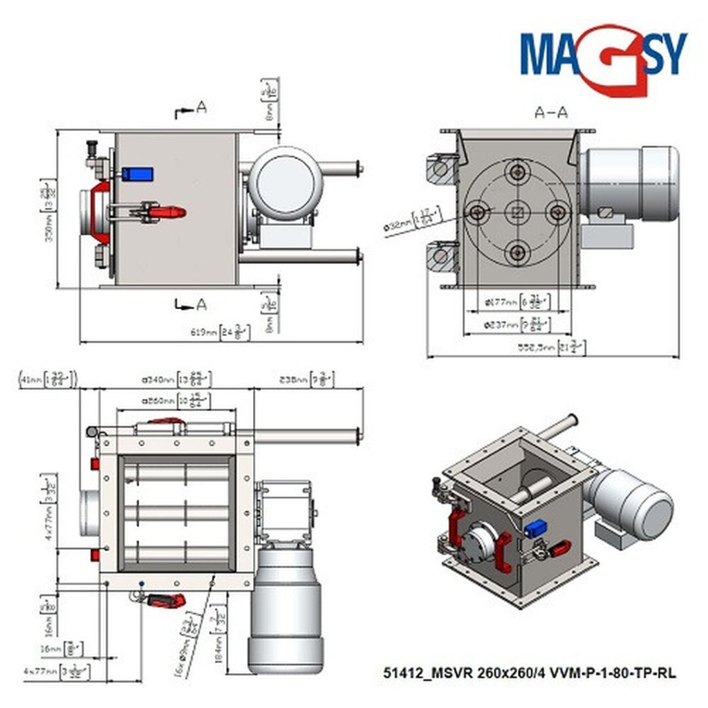 Rotational magnetic separator MSVR 260x260/4 VVM-P-1-80-TP-RL