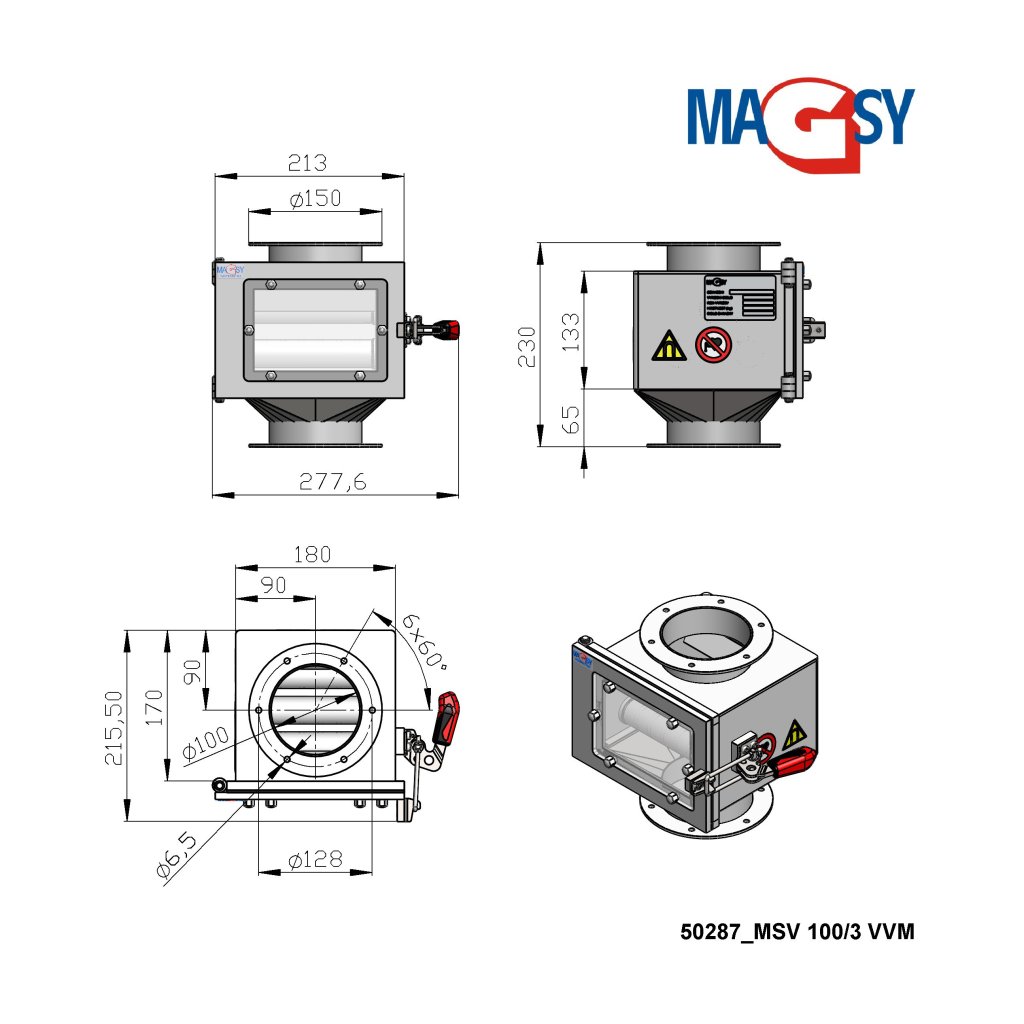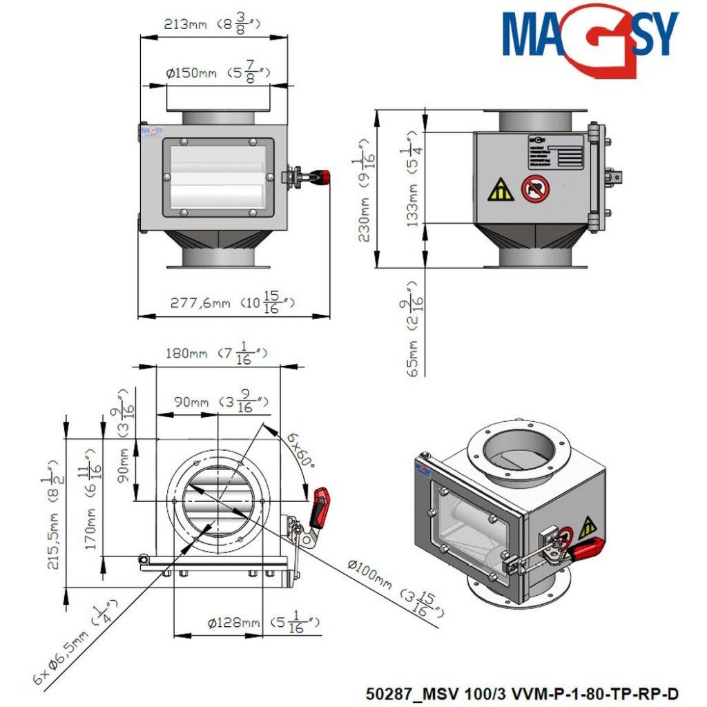 Magnetic separator is manufactured using DIN 1.4301 stainless steel.