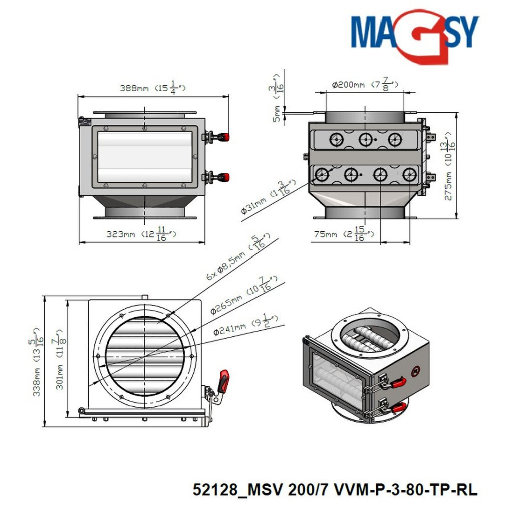 Telescopic magnetic separator MSV 200/7 VVM-P-3-80-TP-RL
